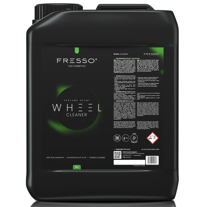 Fresso Wheel Cleaner on loodud teie auto väliste elementide põhjalikuks puhastamiseks täiesti ohutul viisil. Tänu oma täiustatud valemile kleepub rattapuhastusvahend iga elemendi külge, lahustades tõhusalt kogunenud mustuse. Kerge mustuse eemaldamiseks võite toodet lahjendada veega vahekorras kuni 1:10. Toode on happevaba ja ohutu kasutada igat tüüpi velgedel, rehvidel ja alumiiniumil. Lisaks sisaldab see korrosiooniinhibiitoreid, mis kaitsevad puhastatud osi rooste tekkimise eest.